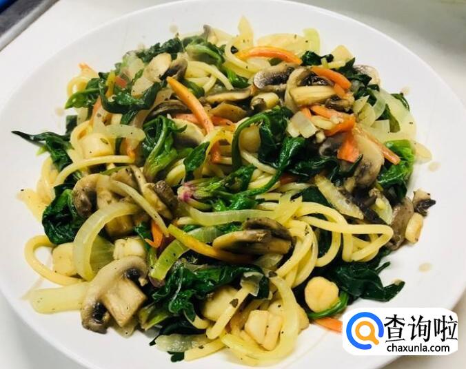 减肥食谱中餐一:蘑菇菠菜意面