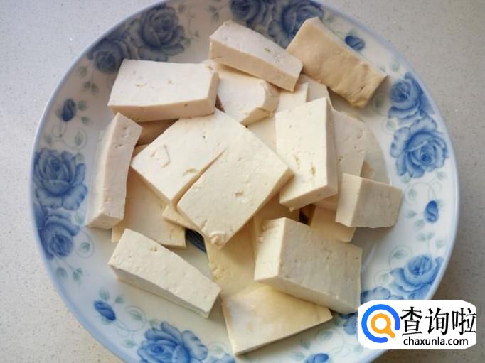 豆腐切成0.3公分左右厚的块,备用。