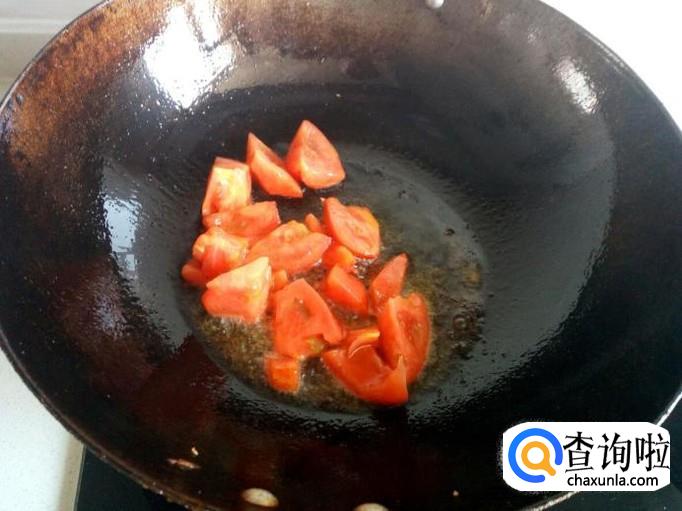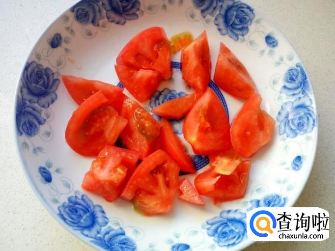 西红柿用水清洗干净,切成块,块不要太大,小块容易炒软下汁。