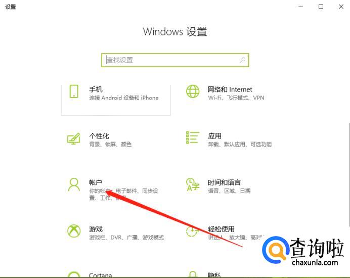 在弹出的界面里,点击“账户”。