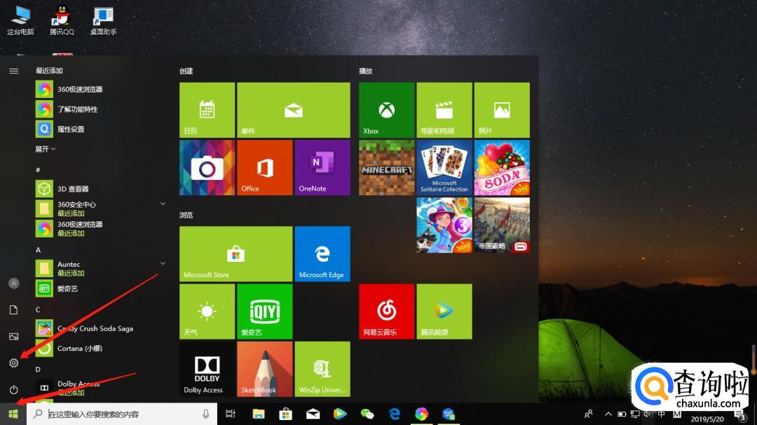 点击左下方的“开始”,然后点击“设置”。