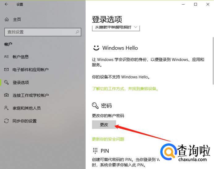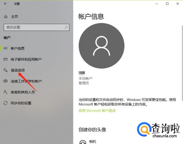 选择“账户”后,点击“登录选项”。