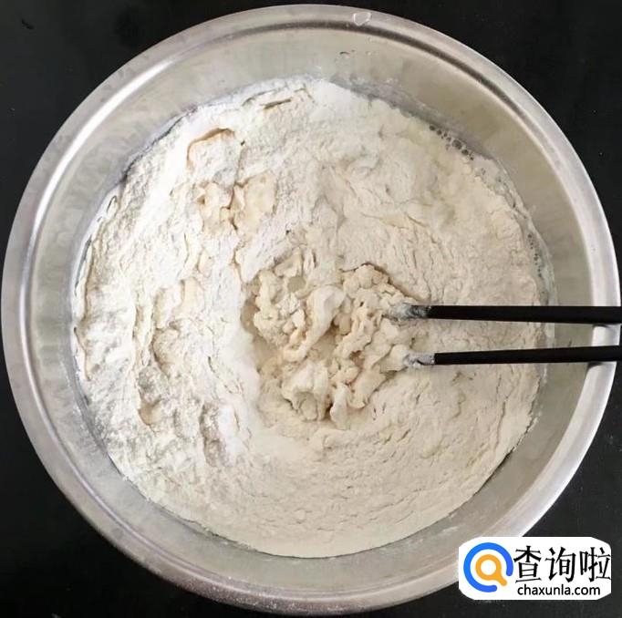取适量的面粉放入容器中搅拌均匀至没有干面粉后和成面团醒30分钟再揉一次使面团表面光滑有弹性