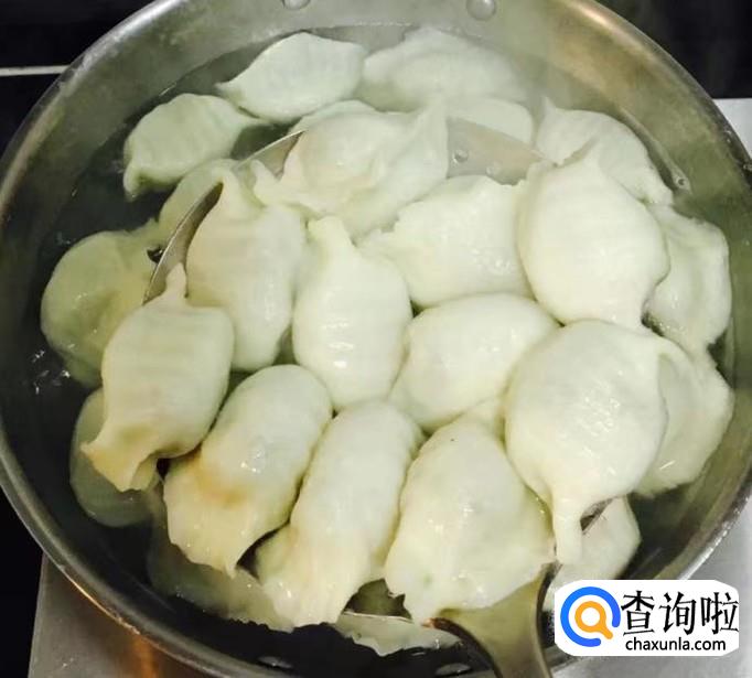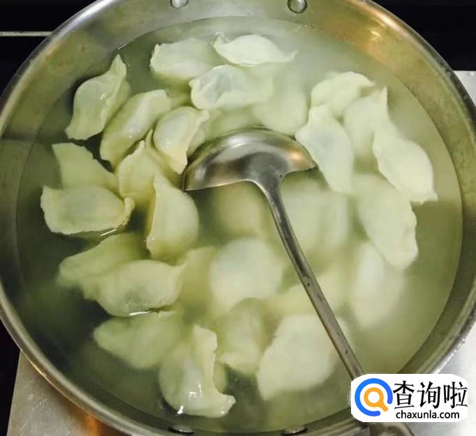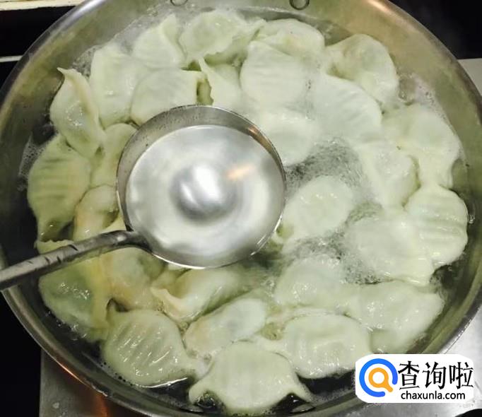 锅中加水煮沸下入饺子用汤勺轻轻推散防止粘连,煮沸后加入适量的清水再次煮沸,重复加水煮沸三次