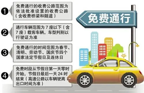 免费通行的车辆范围为7座及以下小型载客汽车(包括允许在普通收费公路行驶的摩托车)可以享受免费政策。其中:7座及以下小型载客汽车是指包括驾驶人在内座位数不超过7个(人)的载客汽车。8座及8座以上的载客汽车以及各类货车和客货两用车都不属于免费范围。《收费公路管理条例》等国家现有法规政策规定免收通行费的车辆除外。在普通收费公路上行驶且可免缴车辆通行费的摩托车,包括由汽油机驱动的两轮摩托车(包括轻便摩托车)、边三轮摩托车和正三轮摩托车,但不包括三轮汽车(即原三轮农用运输车)。通行车辆是否属于免费车辆,主要通过查验其《行驶证》及车辆实际情况认定。