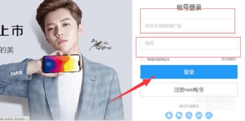 输入vivo手机最初注册的账号和密码,然后点击登陆,如图所示。