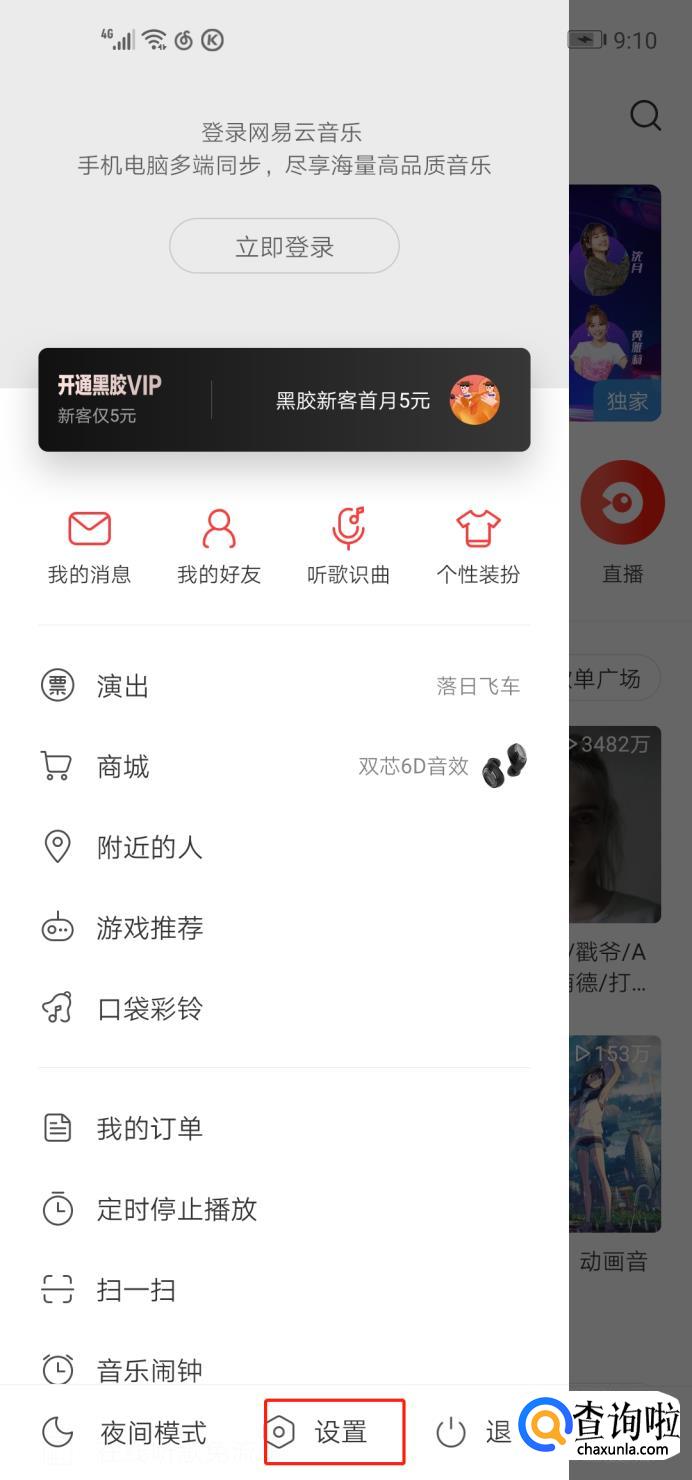 以安卓手机为例,先在手机上下载网易云音乐,下载完后,打开软件,点击设置,往下滑,看到连接DLNA设备,点击。