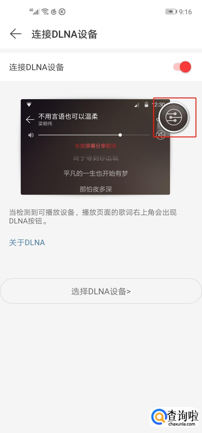 现在找到你喜欢的音乐,进入播放界面,在右上角有投屏按钮,点击,选择连接的设备。