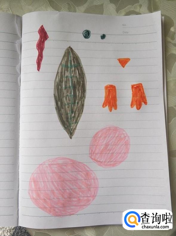 首先,我们找一张纸,然后用颜料笔选好颜色,在纸上画出我们需要做的火鸡的各个部位,并上好颜色。