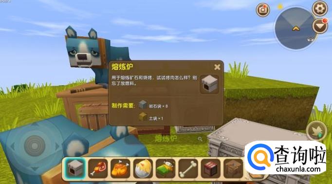 然后我们需要制作一个熔炼炉,熔炼炉是由岩石块和土块制作而成的。