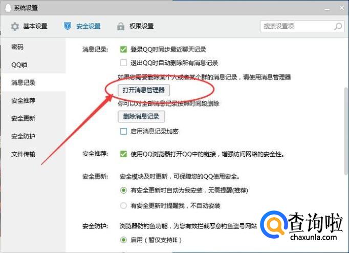 切换到【安全设置】选项卡,点击【消息记录】,如下图所示: