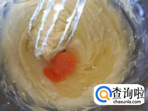 再把鸡蛋磕入容器中,用打蛋器打至泡发即可
