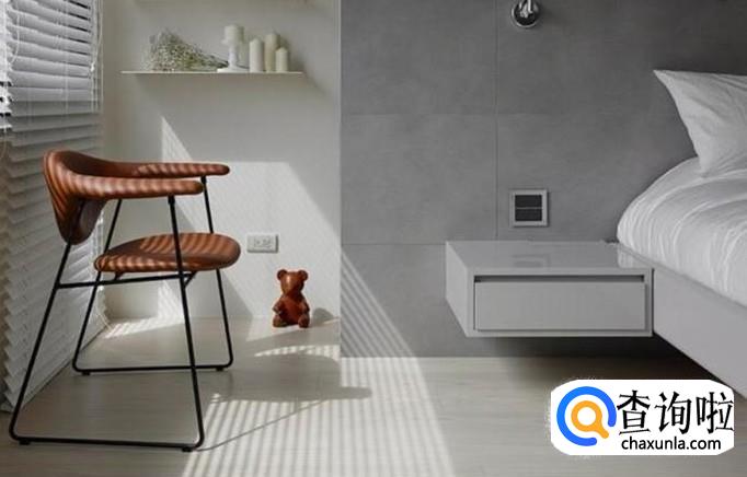 但是如果你的房间空间不大,或者你追求视觉上的房间空间感,又或者你平时不会在床头柜放东西。那么建议你在墙上安装一个悬空的床头柜,这个床头柜仅仅放一点点必需品,比如安装一个抽屉等等。