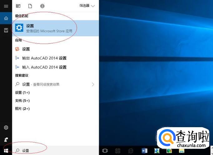 接着在搜索框可以输入"设置",系统会显示所有匹配的项目。Cortana(小娜)显示搜索结果,我们点击"最佳匹配→设置"项。