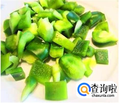 青椒清洗干净,将里面的种子全部取出来,然后清洗一下,用刀切块,或者直接用手掰块。