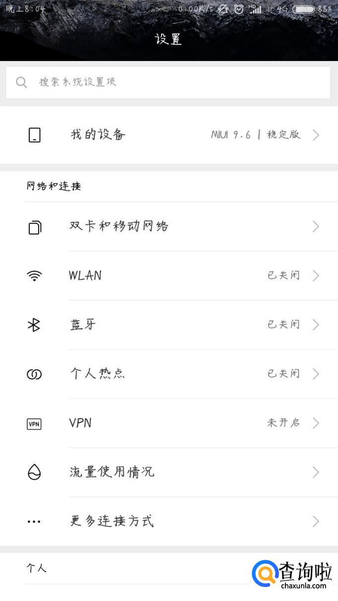 进入设置界面后,找到网络和连接,选择更多连接方式
