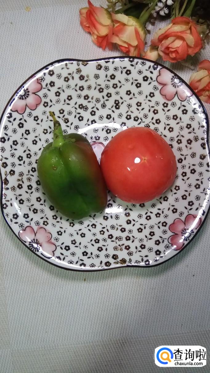 准备食材:适量从超市买回来的新鲜花菜,一个西红柿,一个青椒,食材准备好后,用清水洗净备用。