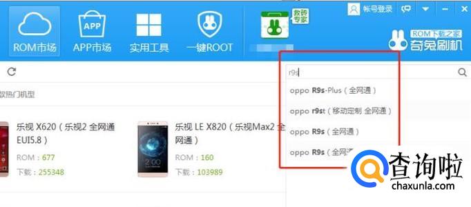 手机连接到电脑后我们在“rom市场”栏目下查找“oppor9s”固件。