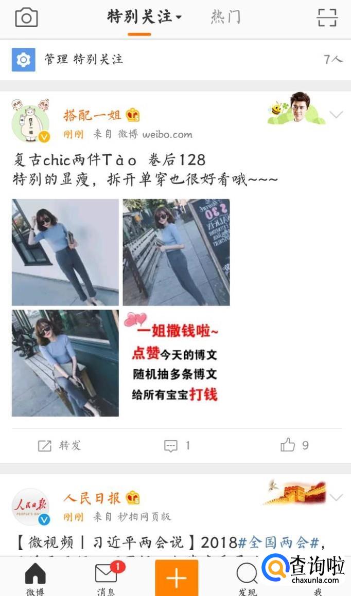 然后在微博首页点击发现