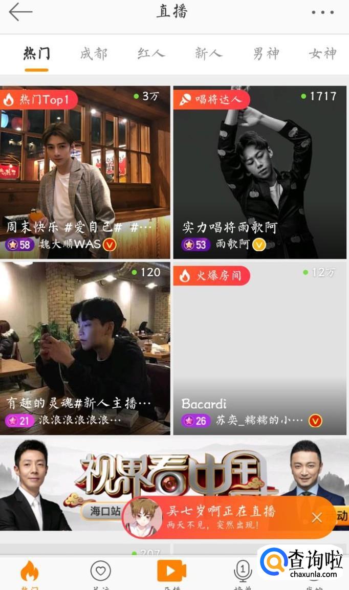 接下来在出现的页面中点击直播,图中的搜索键