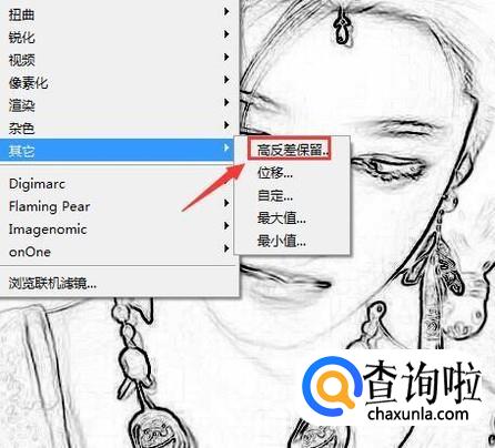 再在滤镜菜单里找到其他选项,点击该选项在其子级菜单哪里找到高反差保留选项,如图所示: