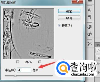 点击高反差保留选项在弹出的对话框内设置参数如图所示: