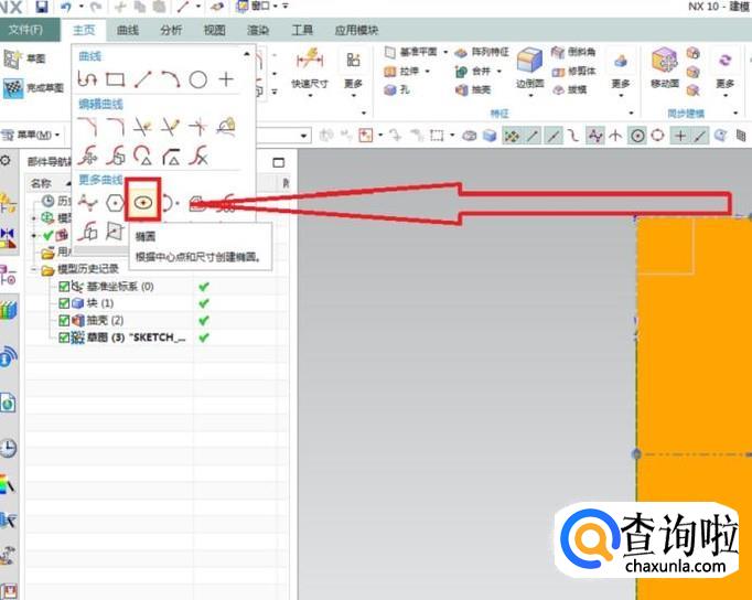 说明一下,椭圆命令隐藏在“直接草图”下拉菜单中,还不够具体的话,那就只能你们自己去找了。