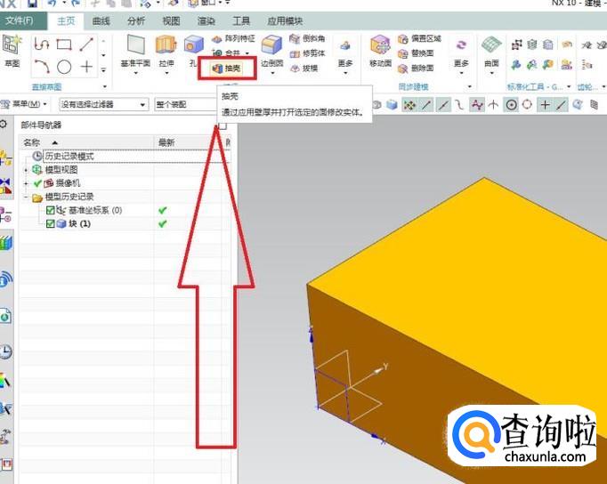 这个“抽壳”命令的激活方式有两种,分别见下两幅图。