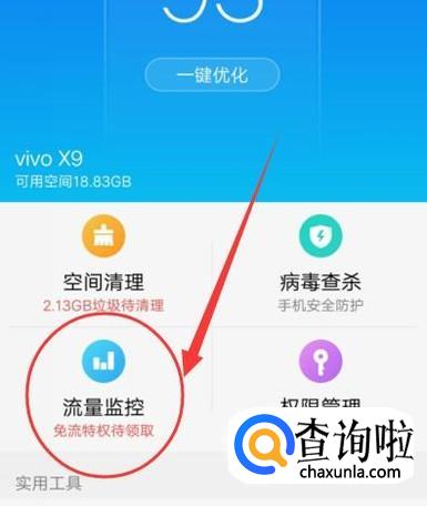 进入i管家之后,点击“流量监控”,进入下一界面,如图所示。