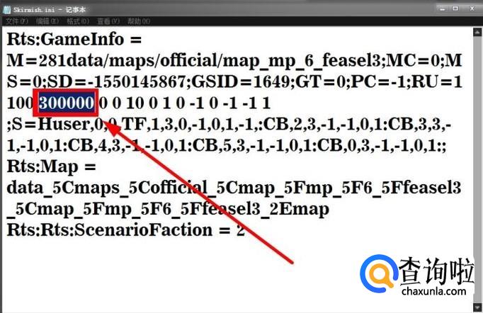 在记事本文件中,找到RU=1100后面的数值,如下图所示,将此数值修改为你想要的大小(此数值可以自由改写),数值修改完成后,保存记事本,重新运行游戏