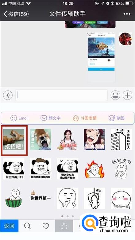 接着选择我想要的斗图表情并双击它,如下图所示。