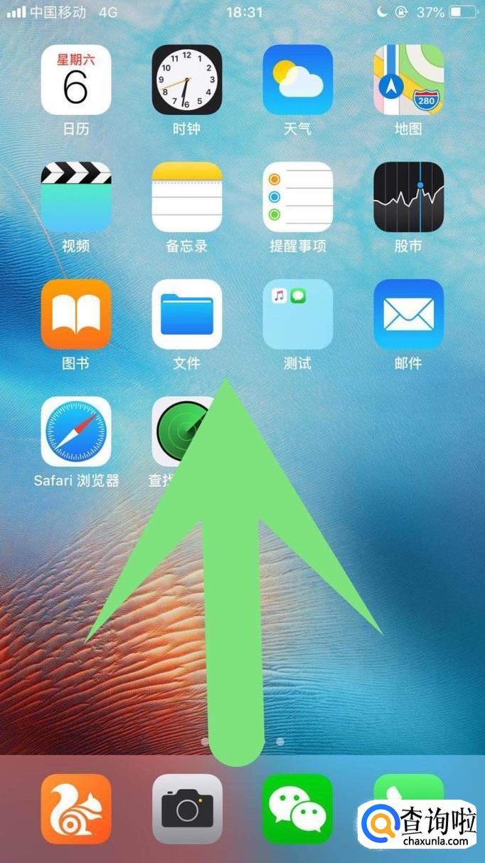 首先将我们的手机屏幕往上滑动,如下图所示。