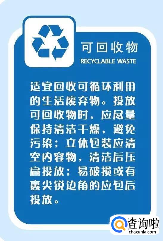 可回收物可用五字口诀牢记,即“玻、金、塑、纸、衣”(小编觉得还可以加一项“木”)。