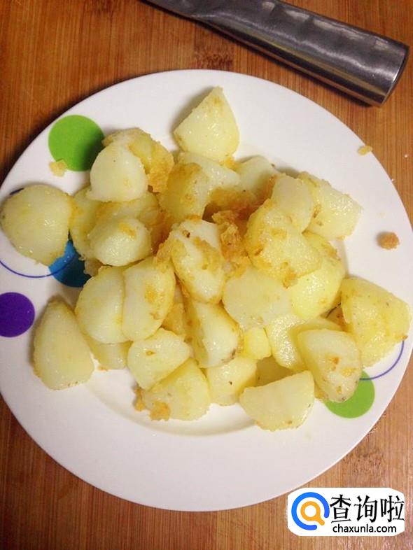 当土豆块表面淡淡的金黄色时,盛入盘中待用。
