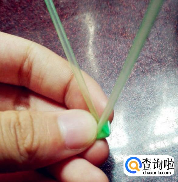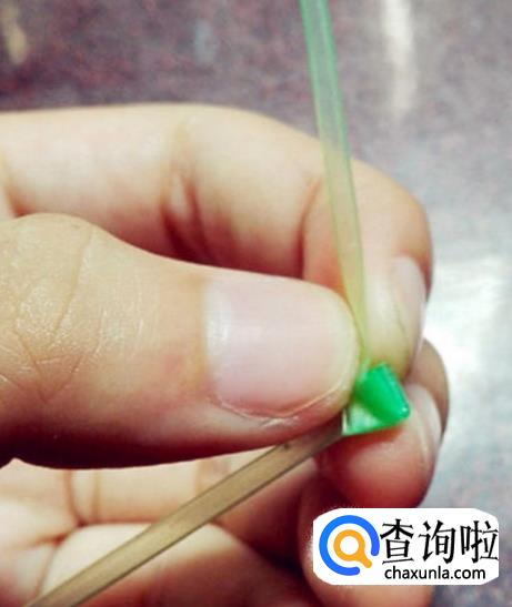 展开吸管,从吸管中间折痕处,将一端吸管向左折。