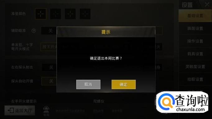 之后会弹出“是否退出本局比赛”的字样,点击确认就可以返回大厅。