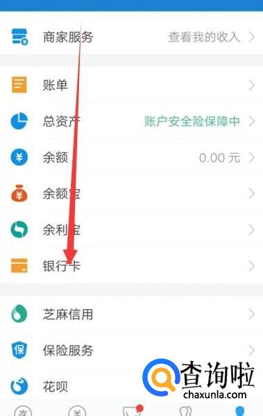 进入之后,点击“银行卡”,进入下一页面,如图所示。