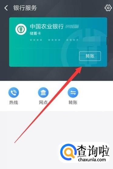 进入到银行服务页面,点击“转账”,进入下一页面,如图所示。