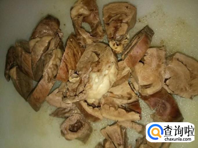 将煮好的猪心捞出,用凉水冲洗干净;