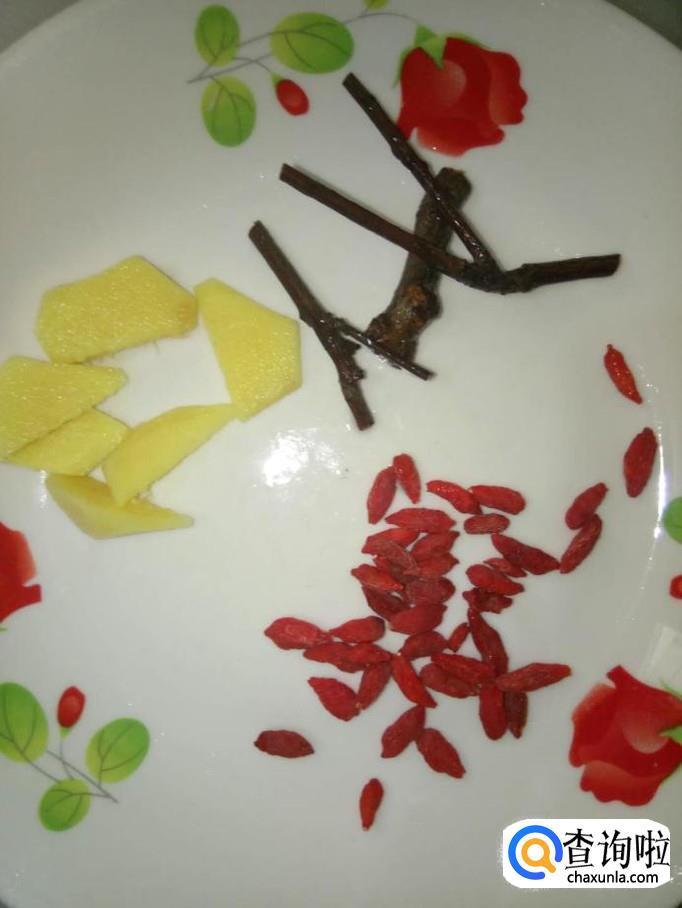取几根桂枝,一小把枸杞,洗净了,备用;