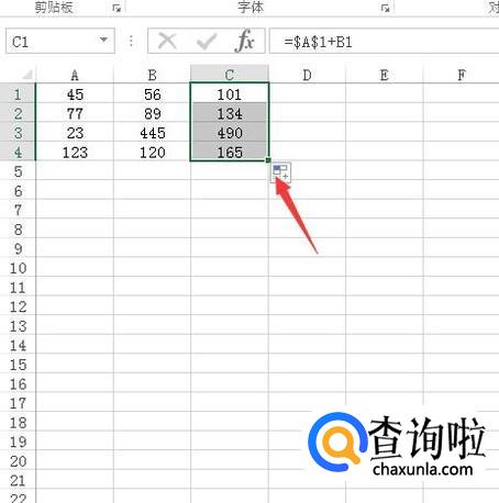 然后按下回车键并向下拖动鼠标左键此时所有的单元格只与A1的数值计算,此时我们使用的就绝对引用,如图所示: