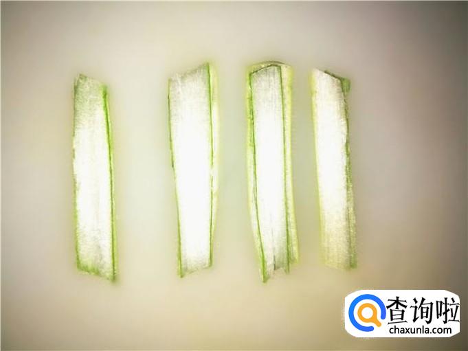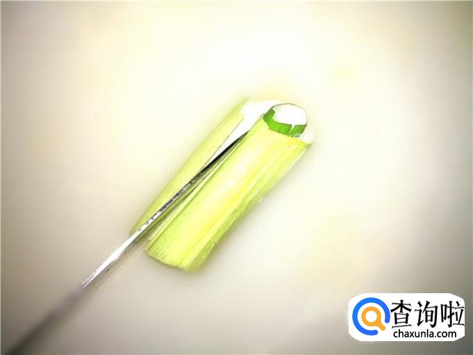 取葱绿(如果方便的话,最好取葱绿和葱白相间的部分),切下一段,长度为手指食指的长度。