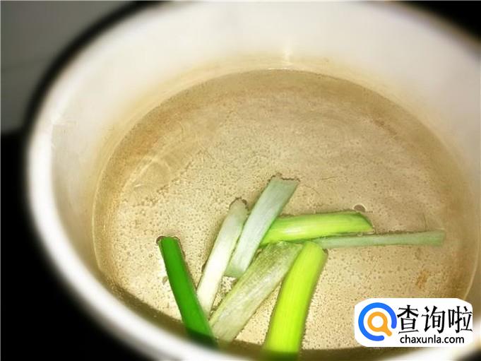 把4个葱条放入锅中,一直煮到锅里出现很多的小气泡,如图所示。