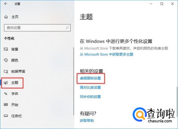 弹出的界面,我们点击主题,然后我们点击桌面图标设置;