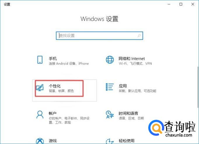 弹出的界面,我们点击个性化;