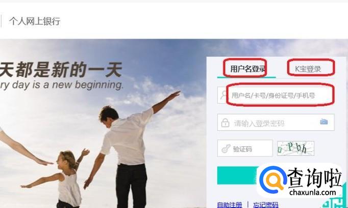 进入官网后,点击“个人网银登录”,然后用用户名或者K宝登录,用户名可以是身份证号、手机号、卡号等多种形式。