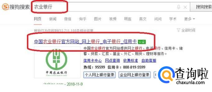 首先,我们需要进入农行官网。可以用浏览器搜索的方式,找到绿色认证的安全网址链接。