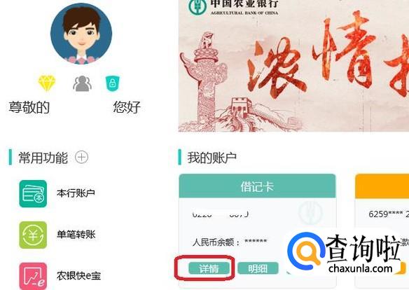 登录后进入账户,我们点击银行卡的“详情”按钮。