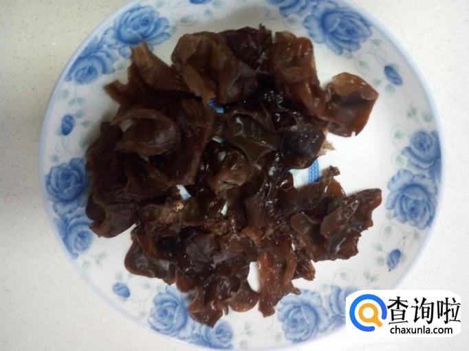 用温水快速泡发木耳,把泡发好的木耳收拾清洗干净,攥干水分(避免炸锅),备用。