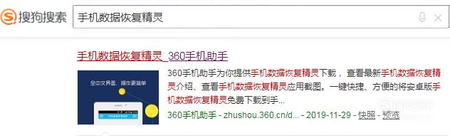 第一步:打开手机应用商店或者浏览器查找手机数据恢复精灵,然后选择安装下载。
